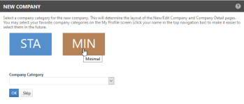- If your settings are configured to prompt you for the organization category, the New Organization page will open to the Organization Category selection page. Refer to Settings.