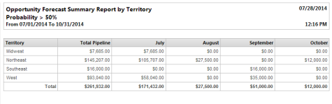 Opportunity forecast summary by territory