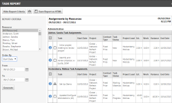 Description Displays all tasks and tickets due within the selected due date range, grouped by resource. For tasks, you can exclude tasks by Project Type.
