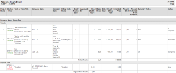 Description Details about tasks, tickets and regular time for specified resource(s) and a specified date range, sorted by resource or organization and project. This report shows both pre-billed and billed work.