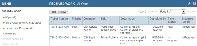 Users with Allow Partner Management or Allow All outsource permissions can manage outsourced tickets from the Outsourced Work lists on the Outsource dashboard. To open the page, use the path(s) in the Security and navigation section above.