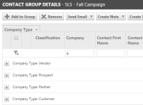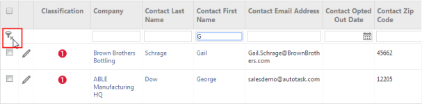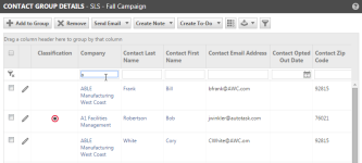 1. Use the column filters or Advanced Filter to locate the contacts you want to remove. Refer to Using the advanced filter.
