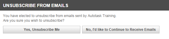 The unsubscribe option in Autotask allows you to easily comply with the CAN-SPAM Act requirements while continuing to communicate technical and product knowledge information as needed. You can also track the contact's opt out date if you choose to respect the CAN-SPAM recommendation to wait 30 days before you resume sending commercial emails to the contact.