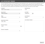 The Lost Opportunity Wizard  completes the tasks required to designate an active opportunity as lost. On the date provided, the wizard will set the opportunity status to lost, add a note to the organization, and notify other users that an opportunity has been lost.
