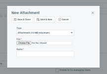 In this section, you add new attachments. They are saved as replies to the note or time entry they are added to.