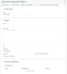 On ticket tables, you can select the Add Note to Selected Tickets option from the bulk menu. This selection opens a page that contains a subset of the fields documented above.