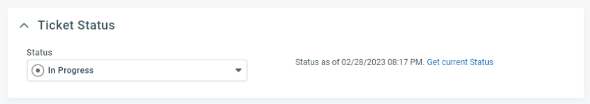 The date/time stamp indicates the date and time the status was last refreshed from the task or ticket. If you have not clicked the Get current Status link, it will be the date and time you opened the page. |