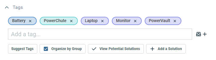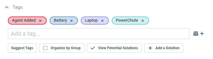 Any tags that are already applied to the ticket appear at the top of the Tags section. They are listed in alphabetical order.