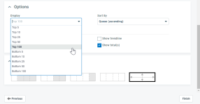 Full-size table widgets require you to group data by a field you must select. The resulting widget table will appear like a summary report.