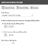 IMPORTANT  Contract rates and Block Hour overage rates may be impacted by the following system setting: Apply Contract Role Block Hour Multiplier to block hour overages, or apply Admin Role Block Hour Multiplier to block hour overages if there is no Contract Multiplier. When off, a multiplier will not be applied to overages. Make sure you take this into consideration when setting contract and overage rates.