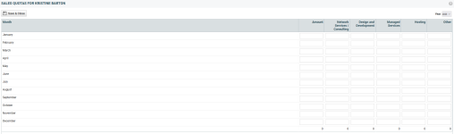 - To assign goals for a resource for each Sales Quota Performance Metric, move your cursor to the appropriate cell in the resource's row and enter an amount.