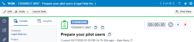 The priority, displayed on a color-coded tab. Administrators can assign a color and an icon to each priority. For tickets, the Priority is always required; for tasks, the category determines if Priority is required or hidden. Refer to The Details tab. |