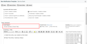 Your existing notification templates were created with the objective of adding subsequent emails as notes or time entries under an existing ticket instead of creating a new one. In Autotask, this was done by adding the [Ticket Number] variable to the Email Subject field, often combined with a text string like "Your ticket has been received."