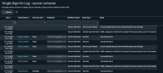 The Single Sign-On Log page keeps track of all the successful and attempted logins to the Client Portal using a custom Identity Provider. Even if you select an earlier date, the page will only show data going back 30 days.
