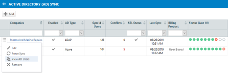 Remove | Removes the AD Sync configuration for the client. All sync history will be gone. Deletion cannot be undone. |