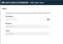 2. A page will appear and prompt you to select first the company, for tasks the Project, and then the Ticket or Task you want to track time on. Only incomplete items for the selected company and project are displayed.