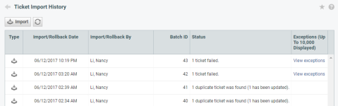 When you close the dialog, the Import History page will be displayed. The import record shows the status of your import.