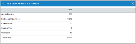 This column provides a per-hour sum of all API calls that took place for all listed categories. |
