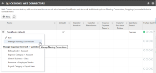 At this point, QuickBooks financial accounts and classes have been imported into Autotask, and you can now complete the final configuration steps from the context menu:
