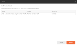 - The Import window will populate. Drag and drop the JSON file you downloaded into the File tab. Alternatively, you can click the Upload Files button and manually navigate to the collection.